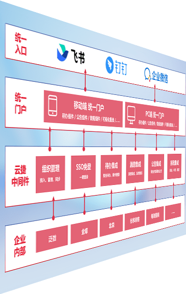 对协作平台提供支持服务,,,支持企业应用与协作平台对接,,,包含组织同步、、消息集成、、、待办集成等。。支持目前主流的协作平台:钉钉、、、企微和飞书。。。。